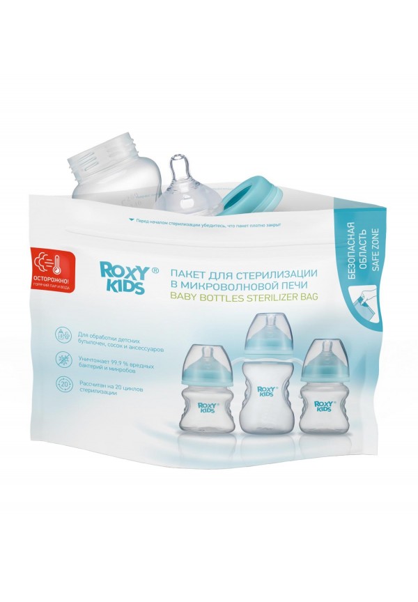 Пакеты для стерилизации в микроволновой печи ROXY-KIDS позволяют быстро и эффективно обработать детские бутылочки, соски и аксессуары с помощью горячего пара!Многоразовые пакеты рассчитаны на 20 циклов стерилизации и имеют долгий срок службы благодаря прочной двойной молнии. Каждый пакет имеет пароотводный клапан и безопасную область для удобного извлечения. Специальное поле для пометок на обратной стороне поможет фиксировать каждое использование. Широкое дно обеспечивает устойчивость пакета в вертикальном положении. Многоразовые пакеты прекрасно подходят для использования дома, в путешествиях, на даче или в гостях.