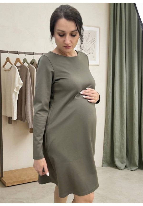 Силуэт расширяется книзу "трапецией", что создает необходимый объём для растущего животика.