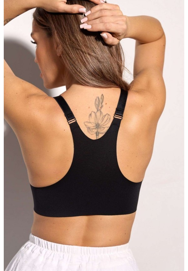 Лифчик без косточек с застежкой впереди будет хорошим решением, если лямки других бюстгальтеров часто сползают с ваших плеч. Чашки смоделируют грудь в случаях несимметричности и/или нестандартной формы груди. Регулируемая длина бретелей рассчитана на рост от 150 до 178 см.