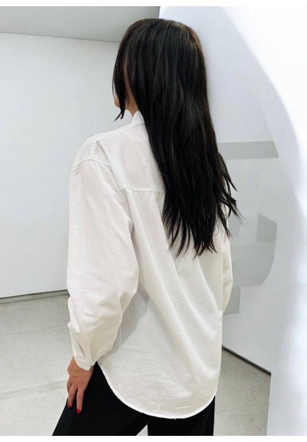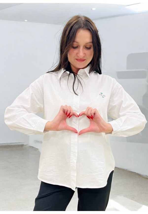 Рубашка на пуговицахт свободного универсального силуэта в стиле оверсайз со спущенным плечом.