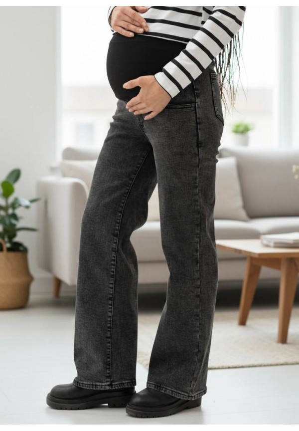Джинсы для беременных с небольшой декоративной нашивкой на переднем кармане.