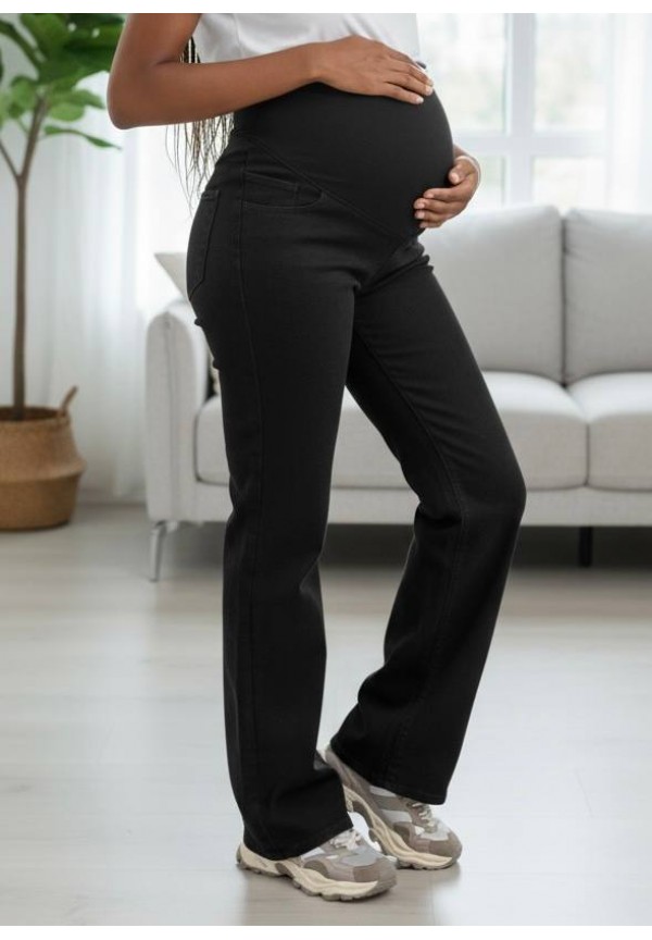 Специальный крой с учетом анатомических особенностей беременных позволяет носить изделие от начала до конца беременности, а также после родов. Цельная спинка хорошо держится на талии, что исключает спадание джинсов.