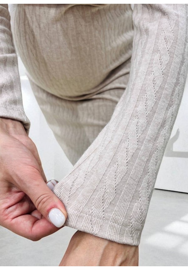 Выполнено из мягкого, теплого, плотного, тонкого трикотажа с фактурой "косы".
