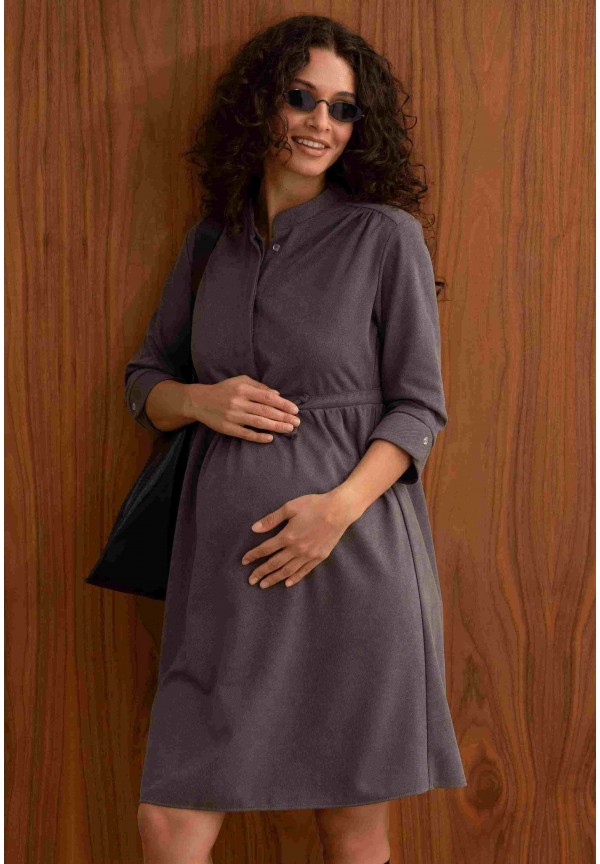 Платье серое для беременных и кормящих (мм535)