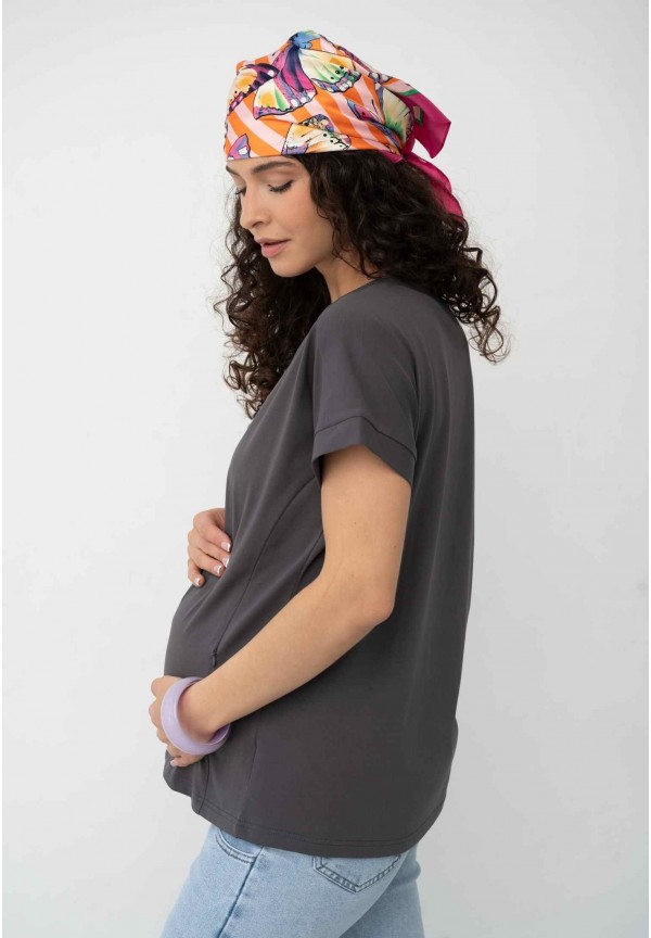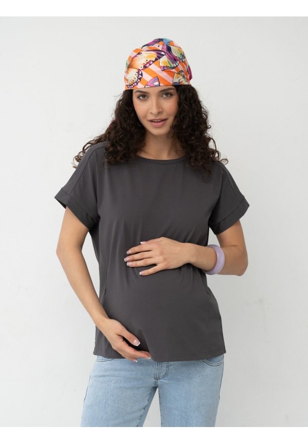 Футболка графит для беременных и кормящих (мм107)