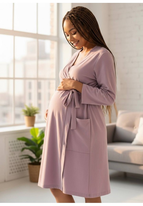Комплект для роддома (халат + сорочка) "Мара" пыльная роза для беременных и кормящих (К-041)