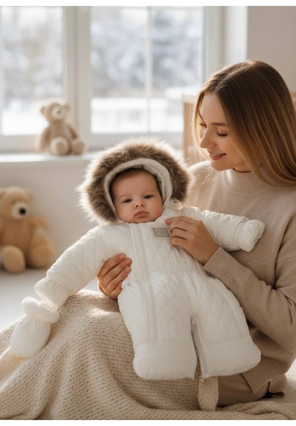 Вам не придется искать дополнительные аксессуары – все уже включено. Утепленные рукавички (варежки) на овчине сохраняют ручки малыша в тепле. Теплые пинетки (ботиночки) на овчине защищают ножки в режиме комбинезона.