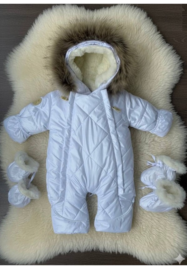 Детский комбинезон-трансформер на овчине белый «Прелесть»