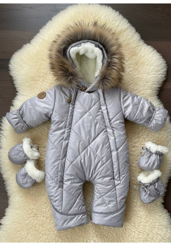 Детский комбинезон-трансформер на овчине серый «Прелесть»