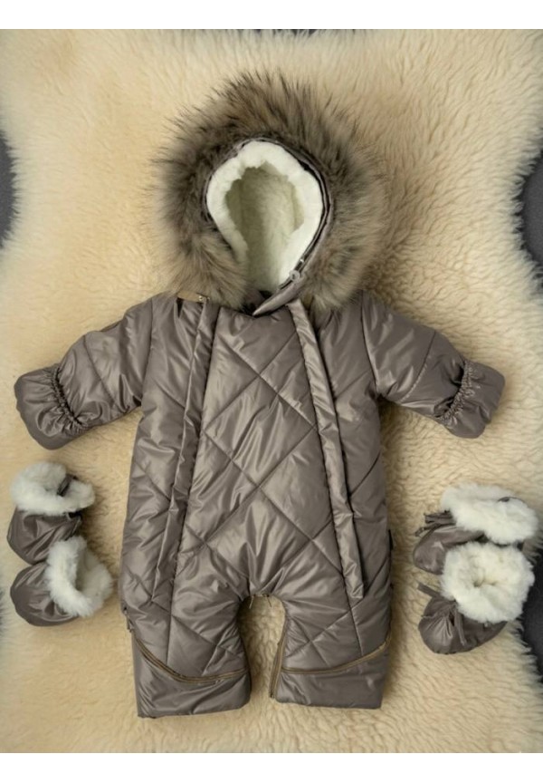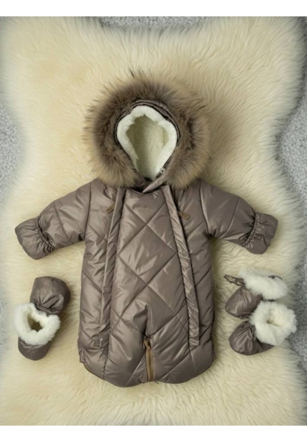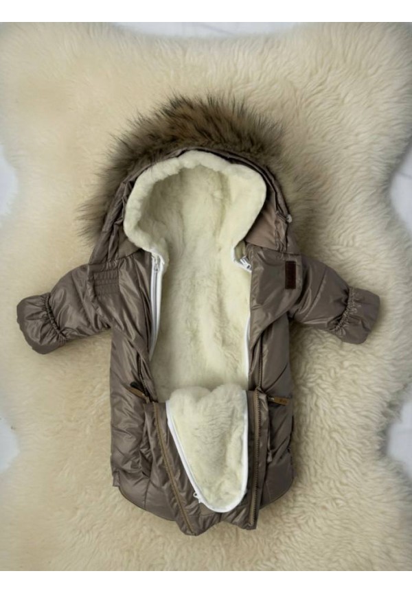 Детский комбинезон-трансформер на овчине какао «Прелесть»