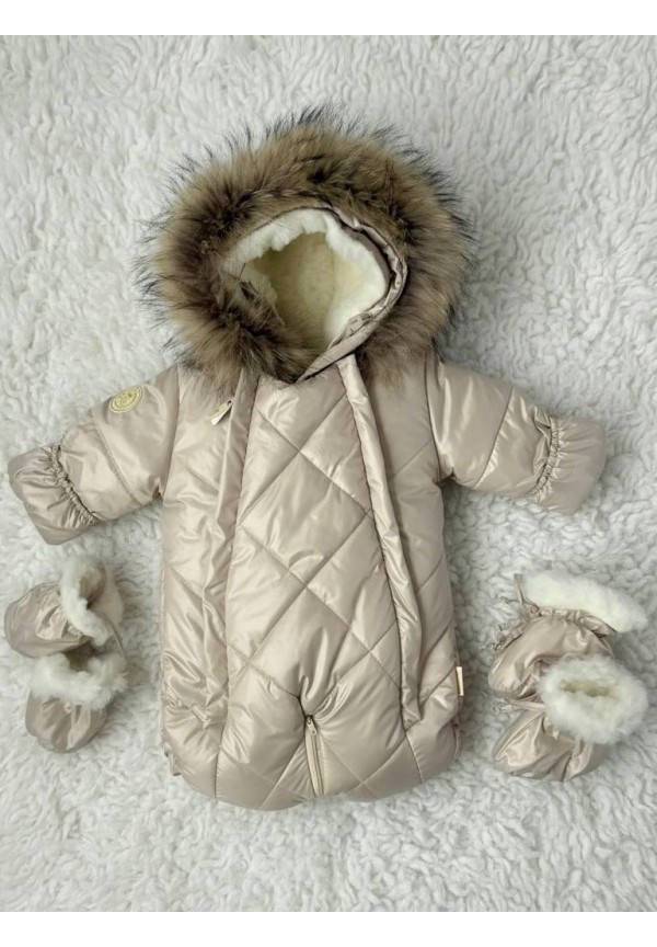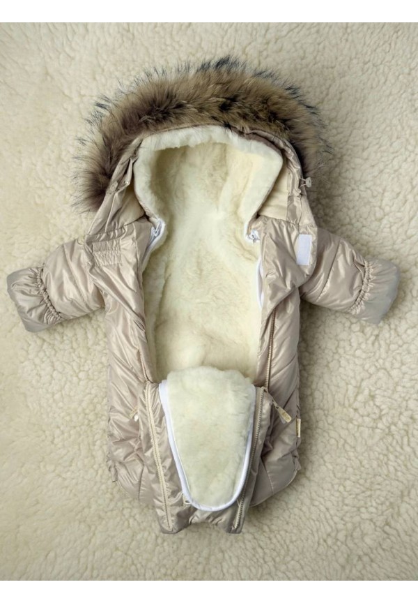 Детский комбинезон-трансформер на овчине кремовый «Прелесть»