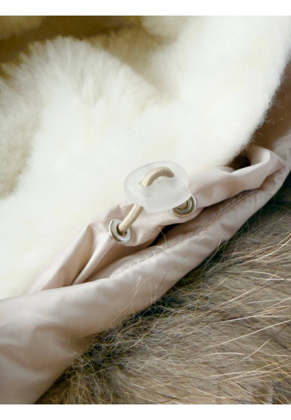 Глубокий капюшон с роскошной опушкой из натурального меха енота дополнительно защитит от непогоды. По краю капюшона имеются кулиски для регулировки по размеру головы ребенка, что обеспечивает малышу дополнительую защиту от ветра.