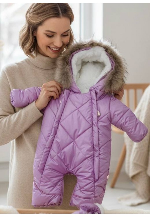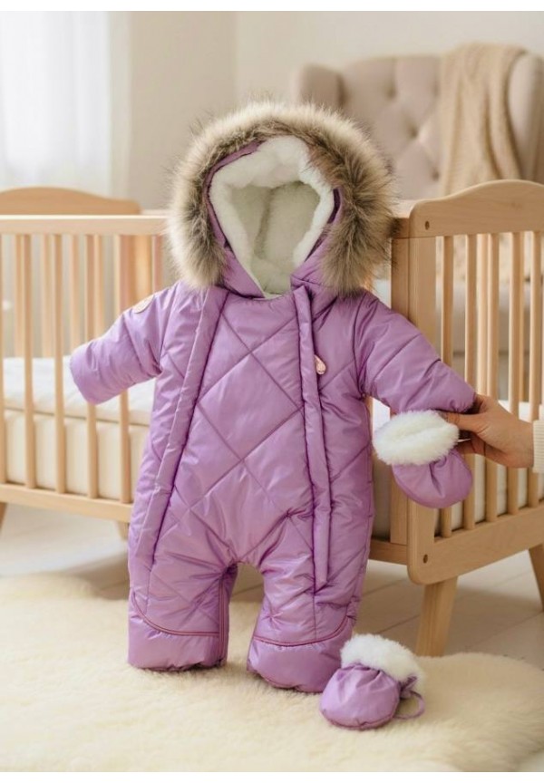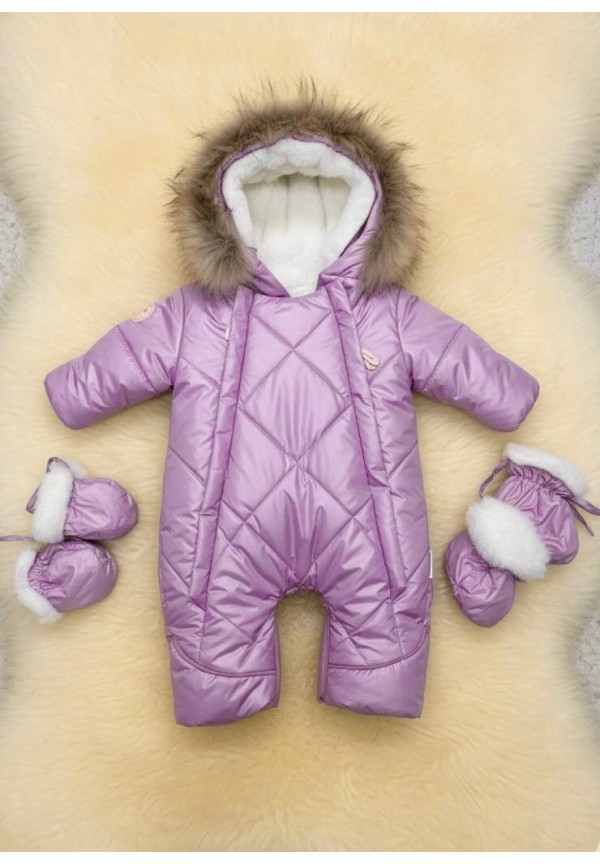 Детский комбинезон-трансформер на овчине лиловый «Прелесть»