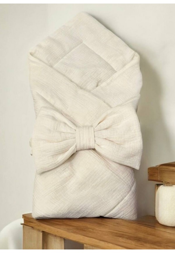 Одеяло муслиновое с бантом на выписку айвори (O-002)