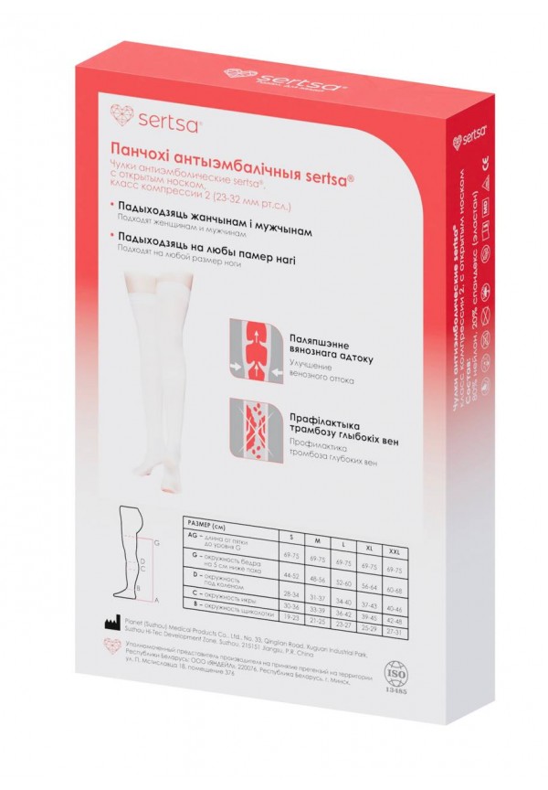 Медицинские компрессионные чулки SERTSA обеспечивают физиологическое распределенное давление в области стопы, голени и бедра, что позволяет увеличить ток крови. Повышают эффективность специфической медикоментозной профилактики тромбоэмболических осложнений.